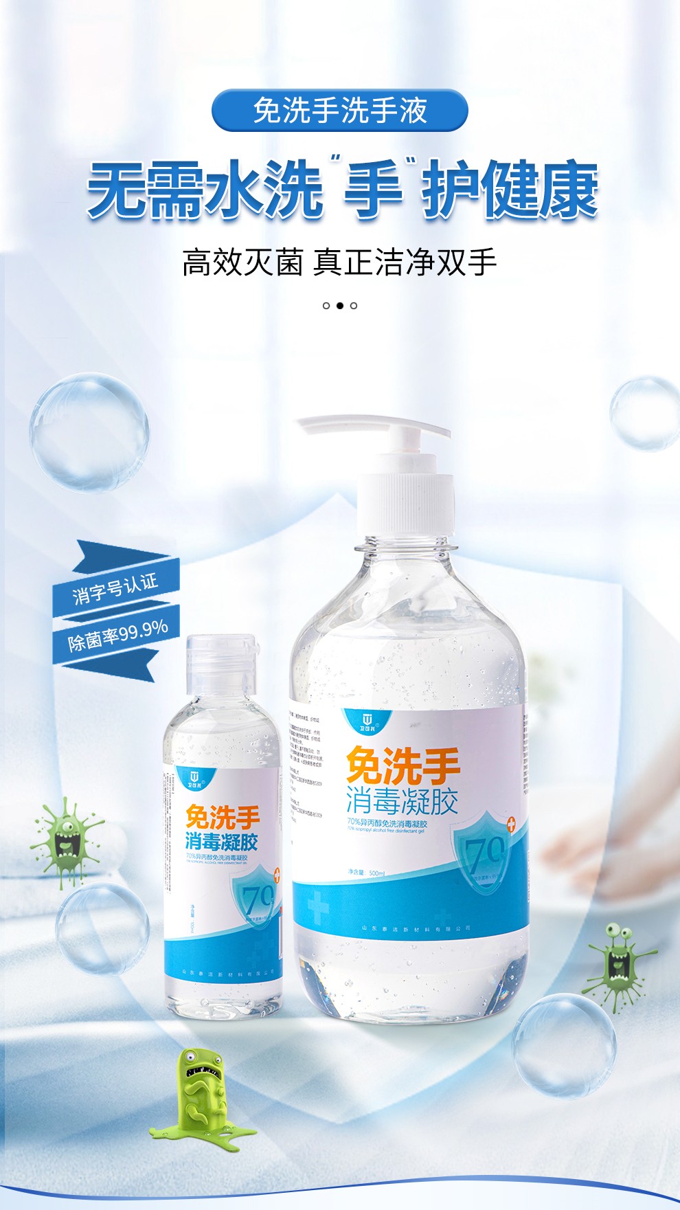 ???衛可托品牌隸屬于山東泰潔新材料有限公司,致力于成為全場景*新型科技消毒、衛生用品制造商。公司深耕于全品類消毒、衛生領域,以最高標準研發、生產產品,現有生產車間10000平,10萬級精華車間5000平,并配有先進的一起設備,完善的實驗設施以及高水平的人才隊伍,不斷提升產品生產制造水平,以保證產品的優良品質。